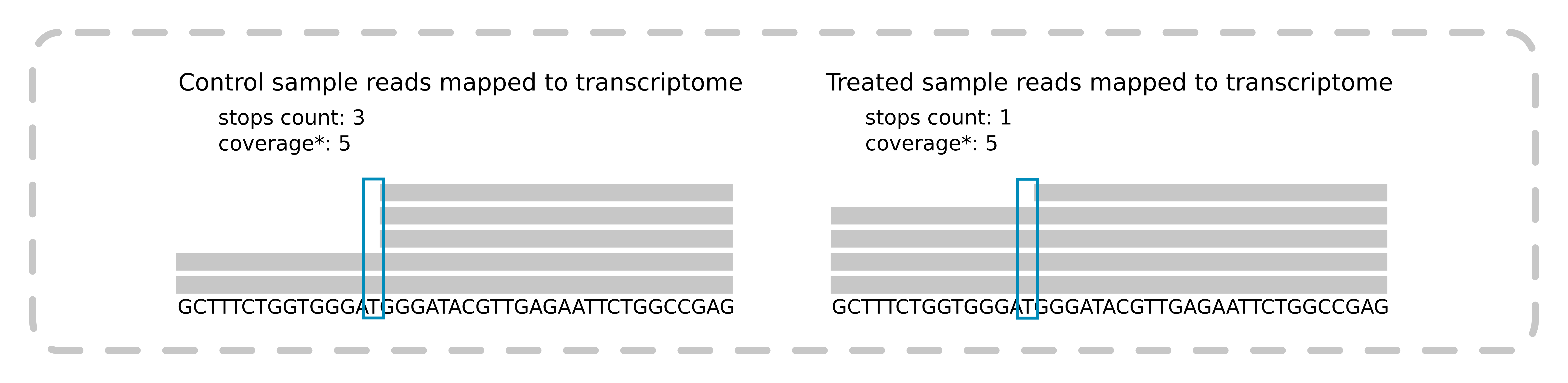 rnaNORM input file contains RT polymerase stops counts for both treated and control samples. The illustration below shows the RT stop identification.